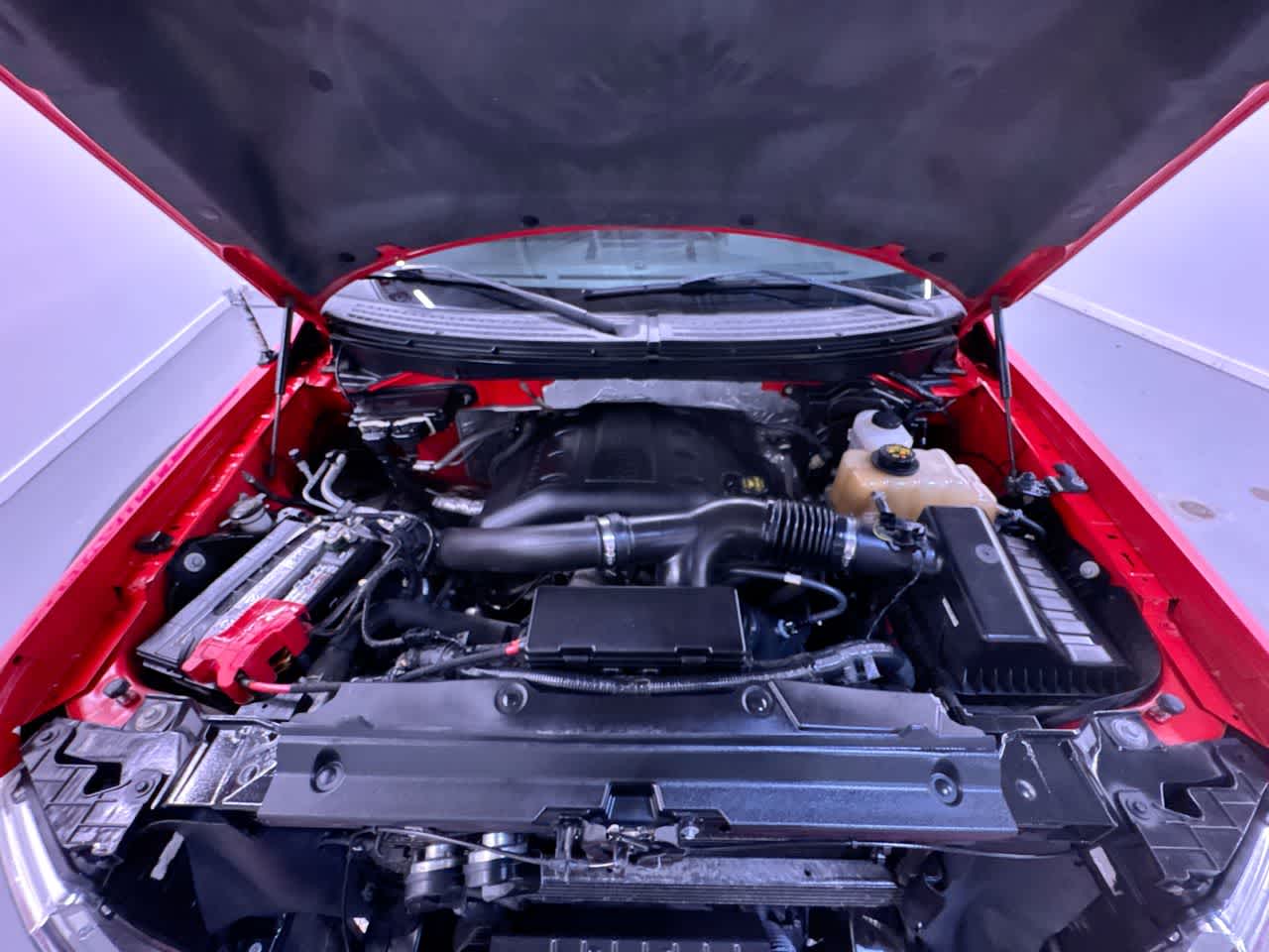 XLT CHROME PKG 5 chrome running boards, chrome exhaust tip, chrome door handles w/black bezels, P275/65R18 all-terrain OWL tires, 18 chrome aluminum wheels, chrome bar-style grille insert w/silver mesh, chrome front tow hooks, MID EQUIPMENT GROUP pwr heated exterior mirrors w/integrated turn signals & driver side auto-dimming function, auto-dimming rearview mirror, 6-way pwr driver seat, pwr adjustable pedals, SiriusXM satellite radio, MyFord w/5-way steering wheel control switch, 4.2 LCD audio/climate control screen in center stack, 4.2 LCD productivity screen message center w/trip computer, leather-wrapped steering wheel, trailer tow pkg w/class IV trailer hitch receiver, 7-pin wiring harness, upgraded radiator, aux trans oil cooler, SelectShift auto trans Ford XLT with Race Red exterior and Steel Gray interior features a V6 Cylinder Engine with 360 HP at 5500 RPM*.