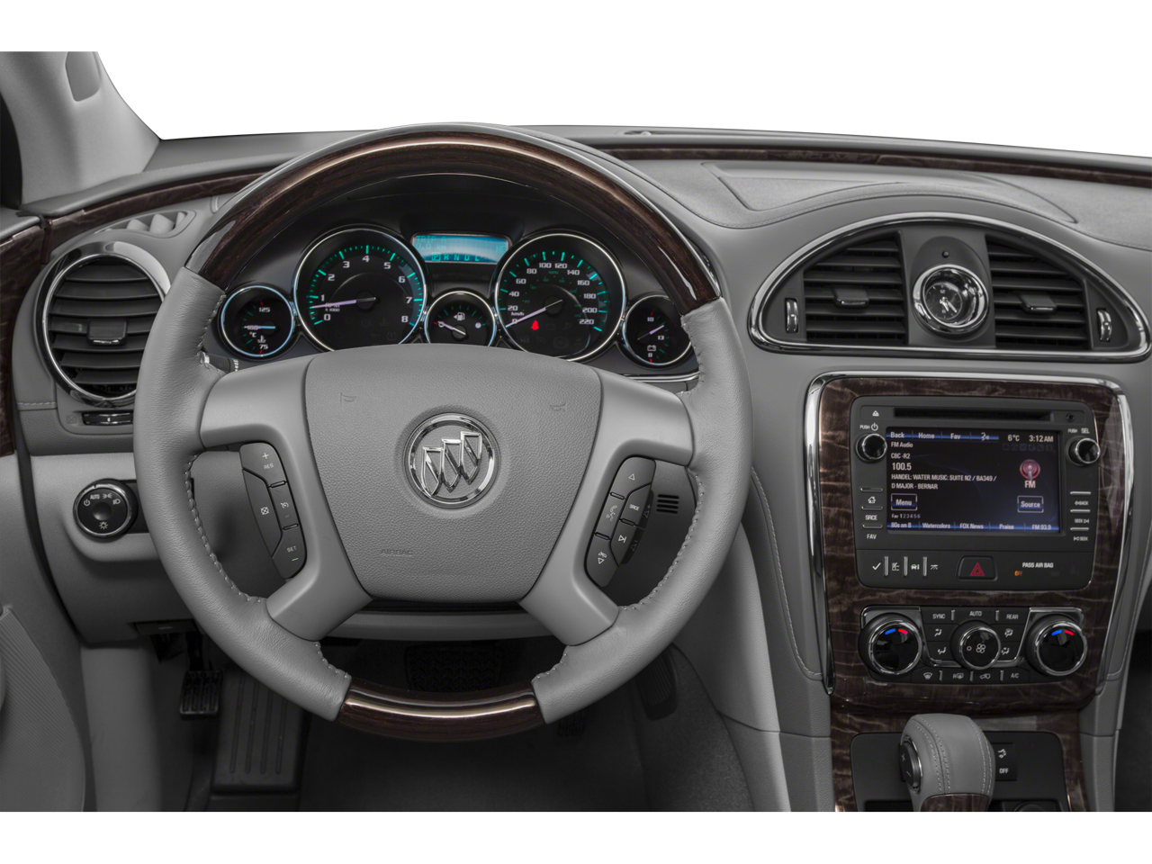 COLOR TOUCH NAVIGATION RADIO WITH INTELLILINK AND REAR SEAT ENTERTAINMENT, AM/FM/SIRIUSXM RADIO WITH CD/DVD PLAYER 6.5" diagonal touchscreen display, includes Advanced Bose 10-speaker system, rear seat display DVD, USB port, auxiliary input jack, rear audio controls with 2 headphone jacks (headphones not included) and 120V outlet, LPO, HIT THE ROAD ACCESSORY PACKAGE includes body-color molded assist steps, Roof Rack Cross Rail Package and cargo area all-weather floor mat, TRAILERING PACKAGE 4500 lbs. includes (V08) heavy-duty engine cooling system, (VR2) trailer hitch, ENGINE, 3.6L VARIABLE VALVE TIMING V6 WITH SIDI (SPARK IGNITION DIRECT INJECTION), DOHC (288 hp [214.7 kW] @ 6300 rpm, 270 lb-ft of torque [364.5 N-m] @ 3400 rpm) (STD), TRANSMISSION, ELECTRONICALLY CONTROLLED WITH OVERDRIVE (STD). Buick Premium with WHITE DIAMOND TRICOAT exterior and CHOCCACHINO interior features a V6 Cylinder Engine with 288 HP at 6300 RPM*.