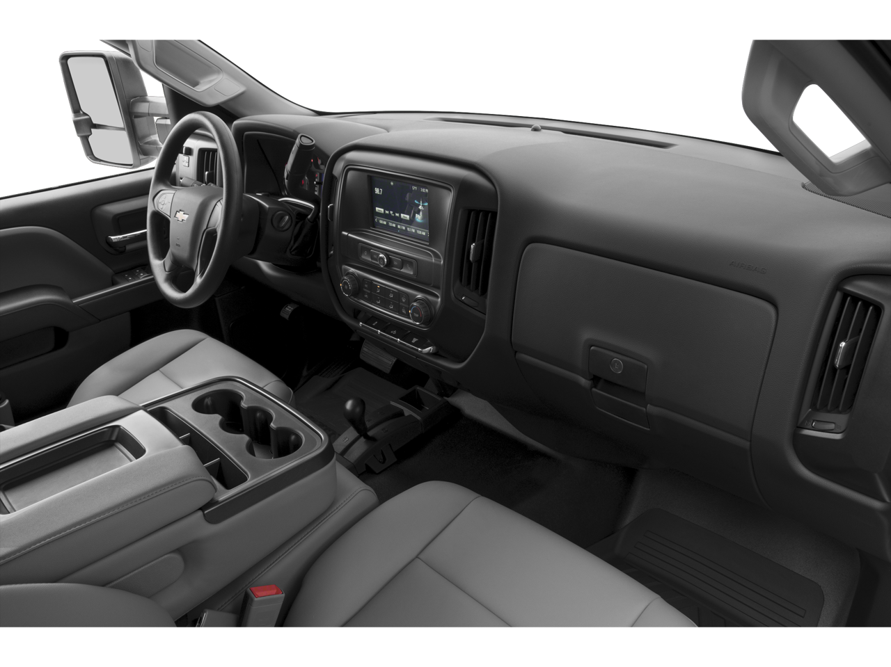 WT CONVENIENCE PACKAGE (Includes (AKO) tinted windows, (KI4) 110V outlet, (AQQ) Remote Keyless Entry, (UVC) Rear Vision Camera and (DL8) outside, heated power-adjustable mirrors. TRAILERING EQUIPMENT Trailering hitch platform 2.5 with a 2.0 insert for HD, 7-wire harness with independent fused trailering circuits mated to a 7-way sealed connector to hook up parking lamps, backup lamps, right and left turn signals, an electric brake lead, battery and a ground, The trailer connector also includes the 4-way for use on trailers without brakes - park, brake/turn lamps Includes (JL1) trailer brake controller. MIRRORS, OUTSIDE HEATED POWER-ADJUSTABLE VERTICAL CAMPER UPPER GLASS, MANUAL-FOLDING AND EXTENDING, BLACK. Includes integrated turn signal indicators consisting of 51 square inch flat mirror surface positioned over a 24.5 square inch convex mirror surface with a common head and lower convex spotter glass (convex glass is not heated and not power adjustable) and addition of Auxiliary cargo lamp for backing up (helps to see trailer when backing up with a trailer) and amber auxiliary clearance lamp and includes (DD8) auto-dimming inside rearview mirror.), GLASS, CHEVROLET MYLINK AUDIO SYSTEM, 4.2 DIAGONAL COLOR SCREEN WITH AM/FM STEREO WITH USB PORTS auxiliary jack, SD card slot, Bluetooth® streaming audio for music and most phones, hands-free smartphone integration, Pandora Internet radio and voice-activated technology for radio and phone, VORTEC 6.0L VARIABLE VALVE TIMING V8 SFI E85-COMPATIBLE, FLEXFUEL capable of running on unleaded or up to 85% ethanol (360 hp [268.4 kW] @ 5400 rpm, 380 lb-ft of torque [515.0 N-m] @ 4200 rpm) with (E63) fleetside pickup box; (322 hp [240.1 kW] @ 4400 rpm, 380 lb-ft of torque [515.0 N-m] @ 4200 rpm) with (ZW9) pickup box delete (STD), HEAVY-DUTY, ELECTRONICALLY CONTROLLED with overdrive and tow/haul mode. Includes Cruise Grade Braking and Powertrain Grade Braking (STD), ONSTAR WITH 4G LTE provides a built-in Wi-Fi hotspot to connect to the internet at 4G LTE speeds.