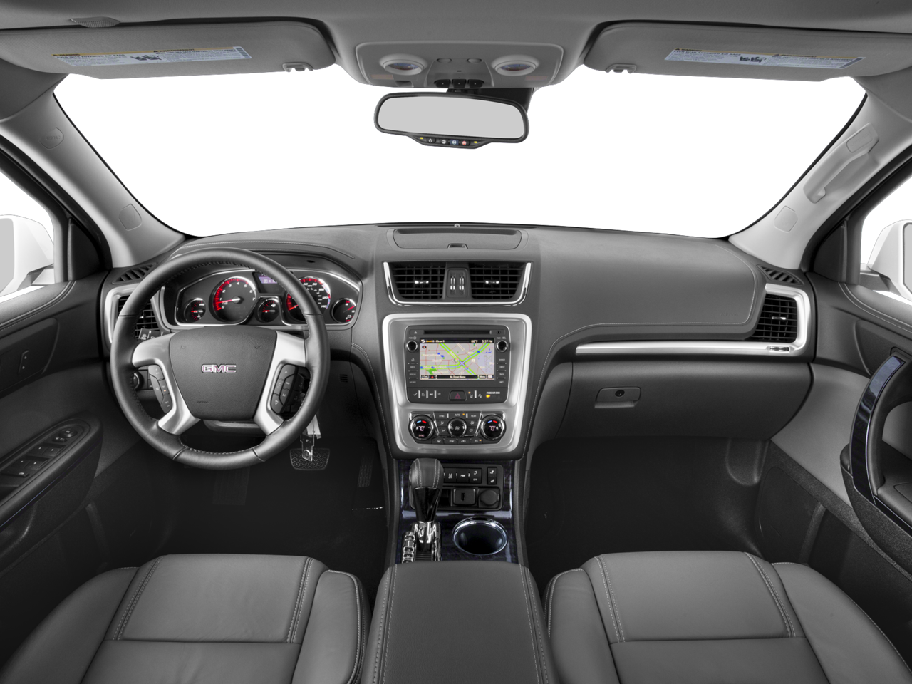 3.6L SIDI V6 (281 hp [210 kW] @ 6300 rpm, 266 lb-ft of torque @ 3400 rpm [359.1 N-m]) (STD), TRANSMISSION, 6-SPEED AUTOMATIC (STD), COLOR TOUCH RADIO WITH INTELLILINK AM/FM/SiriusXM radio with CD player, 6.5" diagonal touch-screen display, USB port and auxiliary input jack (STD). GMC SLT with Quicksilver Metallic exterior and Ebony interior features a V6 Cylinder Engine with 281 HP at 6300 RPM*.