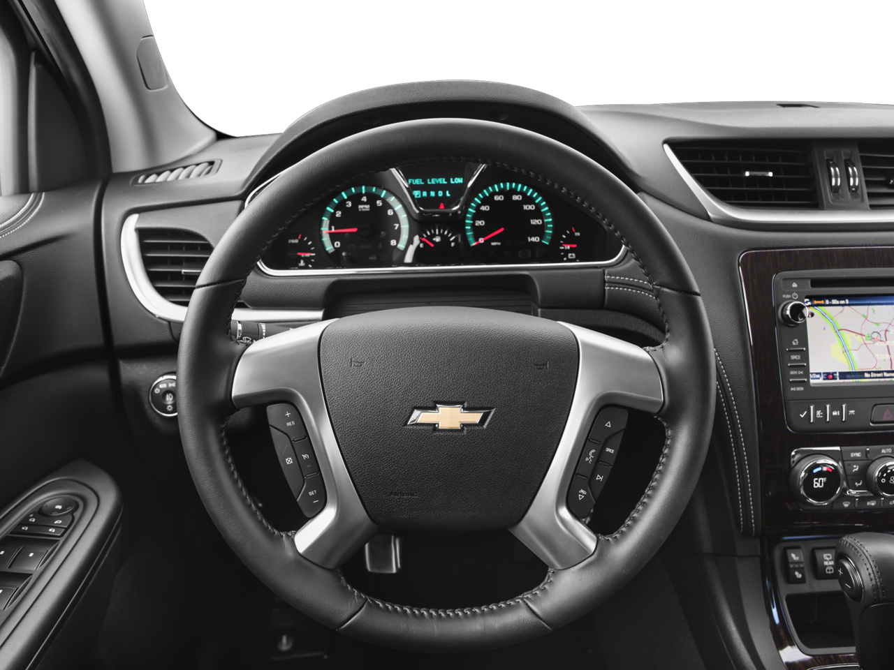 LEATHER AND DRIVER CONFIDENCE PACKAGE includes (**2) leather-appointed seating on first and second rows, (AG3) 8-way power driver seat with power recline, lumbar control and memory, (AH8) 8-way power passenger seat adjuster, (A45) 2-position memory for driver's seat and outside mirrors, (UFT) Side Blind Zone Alert and Rear Cross Traffic Alert, (AXE) power windows with driver Express-Up and - Down and passenger Express-Down and (DNP) outside heated power-adjustable, power-folding, driver-side auto-dimming body-color mirrors with integrated turn signal indicators and driver-side memory, GRAPHITE SPECIAL EDITION includes (ABB) 7-passenger seating, (UI8) Chevrolet MyLink radio with Navigation, (PJL) 4 - 20" X 7.5" (50.8 cm x 19.1 cm) aluminum wheels, (QQD) P255/55R20 H-rated, blackwall tires, (VXW) molded assist steps, LPO, (SFZ) Black Bowtie, LPO, (V92) Trailering equipment and (NEA) dual exhaust with bright tips, SUNROOF, DUAL SKYSCAPE 2-PANEL POWER with tilt-sliding front and fixed rear with sunscreen, TRAILERING EQUIPMENT includes (V08) heavy-duty cooling system and (VR2) trailer hitch, 3.6L SIDI V6 (281 hp [210 kW] @ 6300 rpm, 266 lb-ft of torque @ 3400 rpm [359.1 N-m]) (STD), TRANSMISSION, 6-SPEED AUTOMATIC (STD), AUDIO SYSTEM, CHEVROLET MYLINK RADIO WITH NAVIGATION AND REAR SEAT ENTERTAINMENT 6.5" diagonal color touch-screen display, AM/FM/SiriusXM/HD radio with CD/DVD player, includes Bluetooth® streaming audio for music and select phones; Hands-Free smartphone integration with Pandora and Stitcher; voice-activated technology for radio and phone, BOSE 5.1 SURROUND SOUND 10-SPEAKER SYSTEM. Chevrolet LT with TUNGSTEN METALLIC exterior and EBONY interior features a V6 Cylinder Engine with 281 HP at 6300 RPM*.