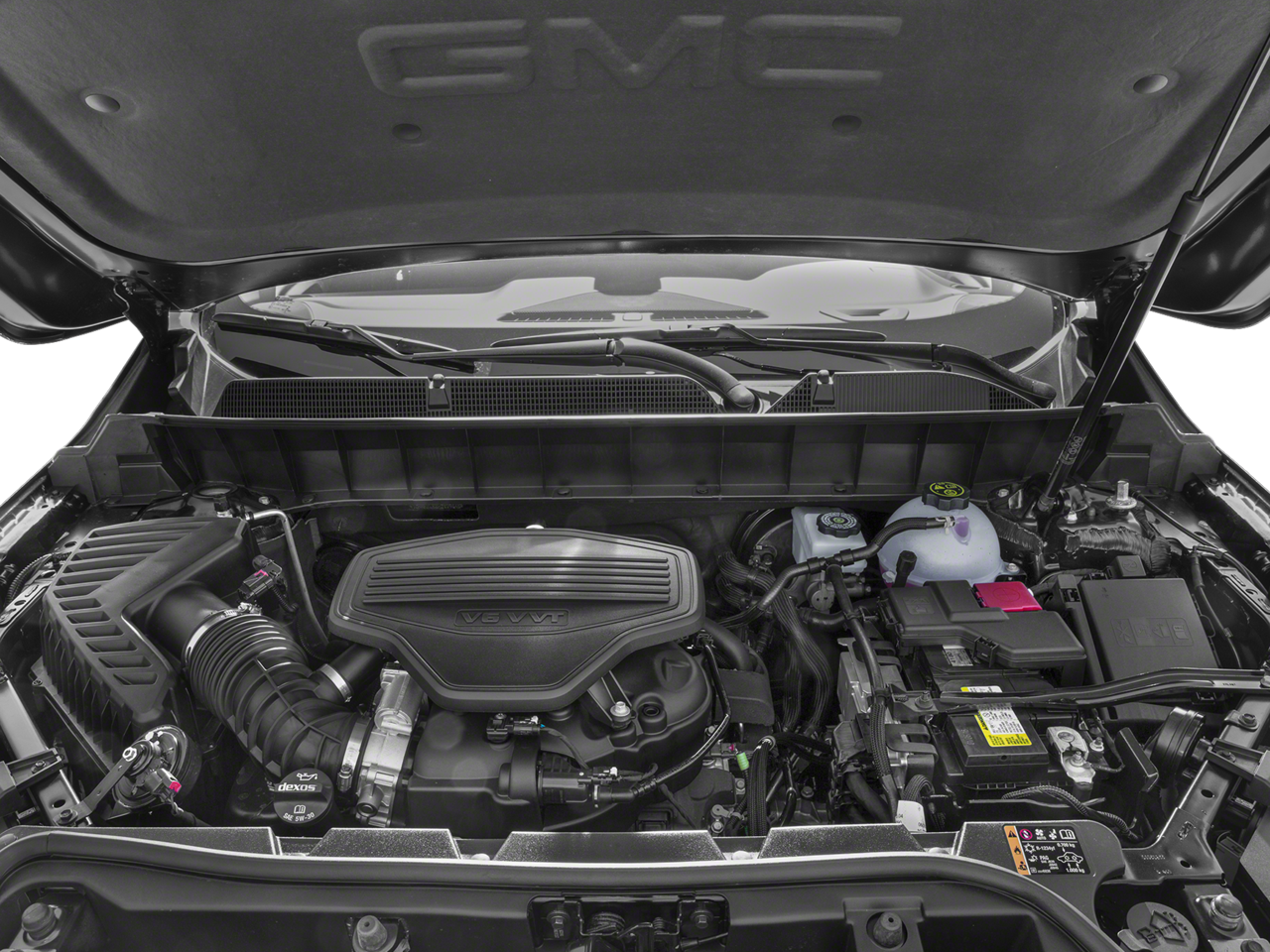 SUNROOF, DUAL SKYSCAPE 2-PANEL POWER with tilt-sliding front and fixed rear with sunscreen, AM/FM/SIRIUSXM USB ports, auxiliary jack, Bluetooth® streaming audio for music and most phones, advanced phone integration featuring Apple CarPlay®, Android Auto® and voice-activated technology for radio and phone (STD), DOHC with Variable Valve Timing (VVT) (310 hp [231.1 kW] @ 6600 rpm, 271 lb-ft of torque @ 5000 rpm [365.9 N-m]) (STD), 6-SPEED AUTOMATIC (STD). GMC Denali with WHITE FROST TRICOAT exterior and JET BLACK interior features a V6 Cylinder Engine with 310 HP at 6600 RPM*.