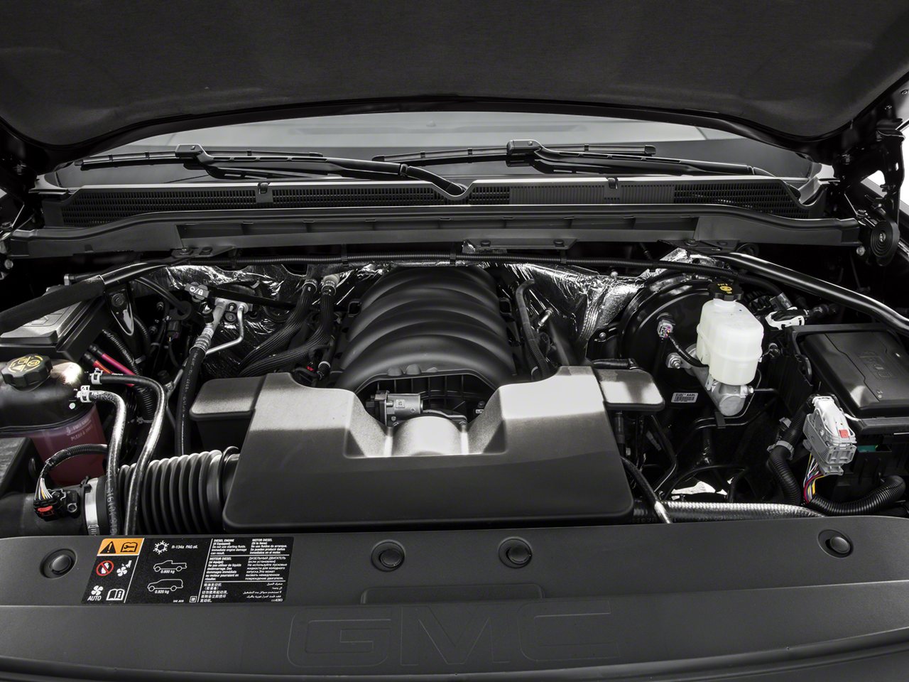 SLE VALUE PACKAGE includes (AG1) driver 10-way power seat adjuster when ordered with (AZ3) seats only, (N37) manual tilt and telescopic steering column, (BTV) Remote vehicle starter system, (T3U) LED front fog lamps, (UG1) Universal Home Remote, (C49) rear-window defogger, (KI4) 110-volt AC power outlet, (CJ2) dual-zone climate control, (Z82) trailering equipment, and (G80) rear locking differential for 2WD models only, ENGINE, WITH ACTIVE FUEL MANAGEMENT, DIRECT INJECTION and Variable Valve Timing, includes aluminum block construction (355 hp [265 kW] @ 5600 rpm, 383 lb-ft of torque [518 Nm] @ 4100 rpm; more than 300 lb-ft of torque from 2000 to 5600 rpm), OFF-ROAD includes Z71 chrome side front fender emblems, monotube Rancho brand shocks and (K47) air cleaner, (JHD) Hill Descent Control, (NZZ) underbody shield (Includes (UHN) 18" x 8.5" (45.7 cm x 21.6 cm) bright machined aluminum wheels. TRAILERING EQUIPMENT includes trailer hitch, 7-pin and 4-pin connectors (Includes (G80) locking rear differential on 2WD models. SEAT ADJUSTER, SEATS, 3-PASSENGER. Includes driver and front passenger recline with outboard head restraints and center fold-down armrest with storage. Includes manually adjustable driver lumbar, lockable storage compartment in seat cushion, and storage pockets (STD), AUDIO SYSTEM, 8" DIAGONAL COLOR TOUCH SCREEN WITH GMC INFOTAINMENT SYSTEM, AM/FM/SIRIUSXM, HD RADIO with USB ports, auxiliary jack, Bluetooth® streaming audio for music and most phones, Pandora Internet radio and voice-activated technology for radio and phone (STD), ELECTRONICALLY CONTROLLED with overdrive and tow/haul mode. Includes Cruise Grade Braking and Powertrain Grade Braking (STD). GMC SLE with ONYX BLACK exterior and JET BLACK interior features a 8 Cylinder Engine with 285 HP at 5300 RPM*.