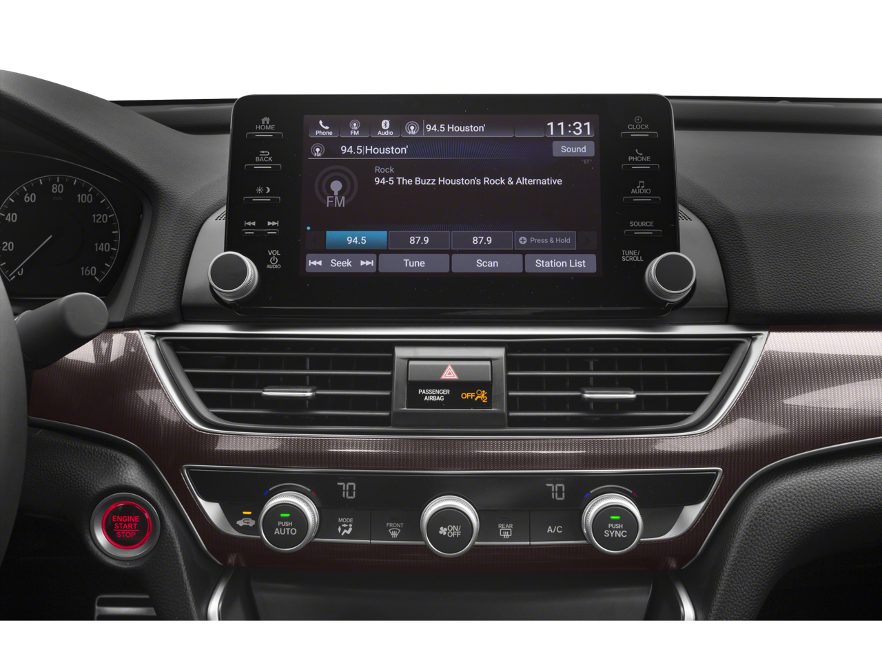 - Radio: 180-Watt AM/FM Audio System -inc: 8 speakers, 8" Display Audio w/high-resolution (720P) electrostatic touch-screen, knobs and hard keys for primary controls and customizable feature settings, Bluetooth® HandsFreeLink, Bluetooth® streaming audio, Pandora compatibility, SMS text message function, radio data system (RDS), speed-sensitive volume compensation (SVC), USB smartphone/audio interface w/2.5-amp port in front, HondaLink, Apple CarPlay integration, Android Auto integration, illuminated steering wheel-mounted audio controls and fin-type roof-mounted antenna