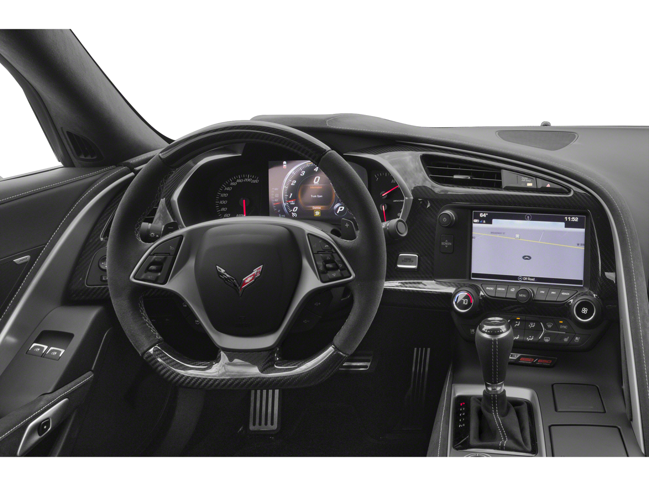 TRANSMISSION, 8-SPEED PADDLE SHIFT WITH AUTOMATIC MODES, WHEELS, Z06 BLACK-PAINTED ALUMINUM 19 x 10 (48.3 cm x 25.4 cm) front and 20 x 12 (50.8 cm x 30.48 cm) rear, REMOTE VEHICLE STARTER SYSTEM, REAR AXLE, 2.41 RATIO, ELECTRONIC LIMITED SLIP (ELSD), AUDIO SYSTEM, CHEVROLET INFOTAINMENT SYSTEM with 8 diagonal color touch-screen, AM/FM/HD stereo with seek-and-scan and digital clock, includes Bluetooth® streaming audio for music and select phones; voice-activated technology for radio and phone; featuring Android Auto® and Apple CarPlay® capability for compatible phone (STD), ENGINE, 6.2L (376 CI) SUPERCHARGED V8 DI (650 hp [485 kW] @ 6400 rpm, 650 lb-ft of torque [881 N-m] @ 3600 rpm) (STD).