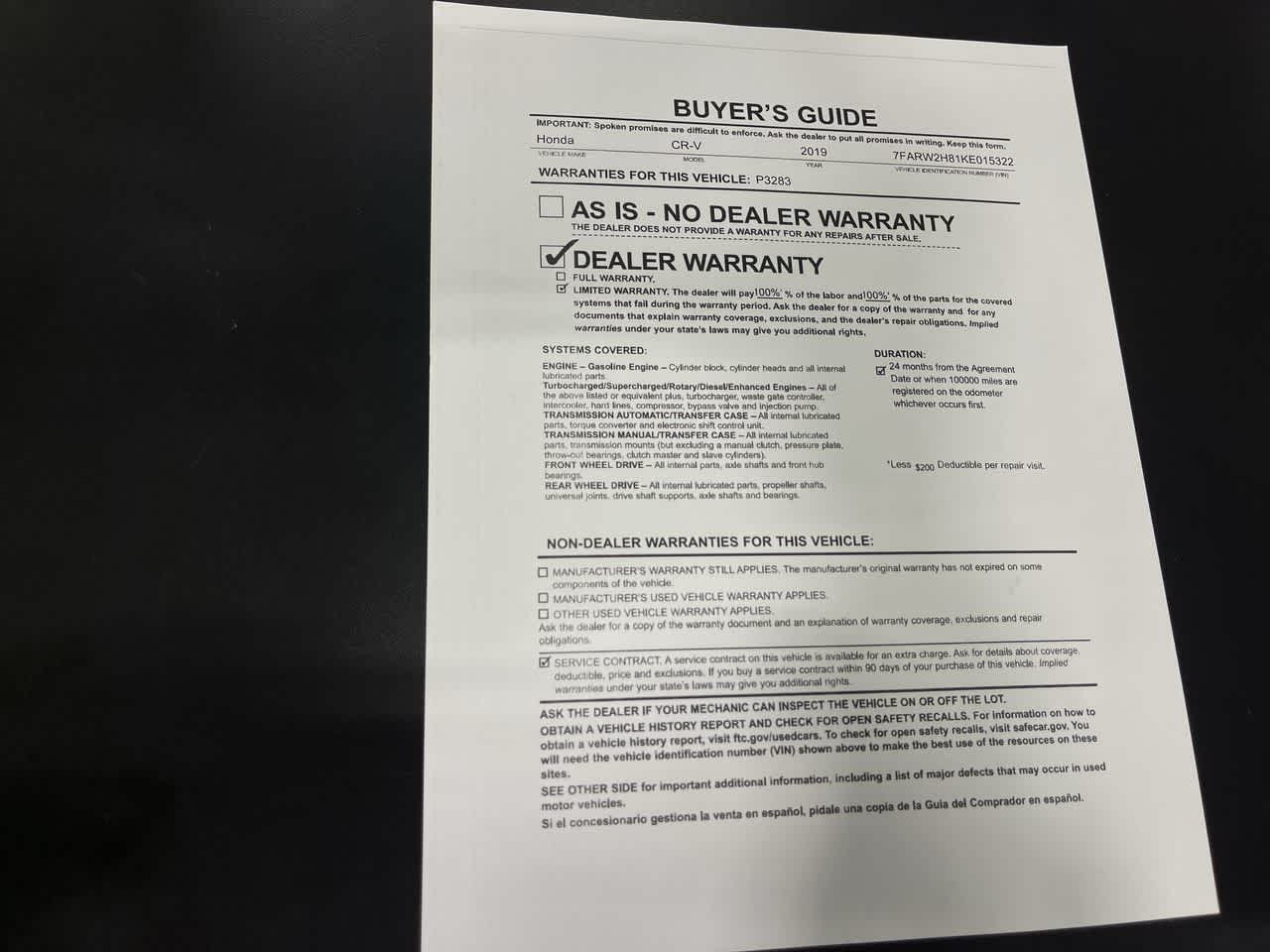 - Vehicle Name: Honda CR-V