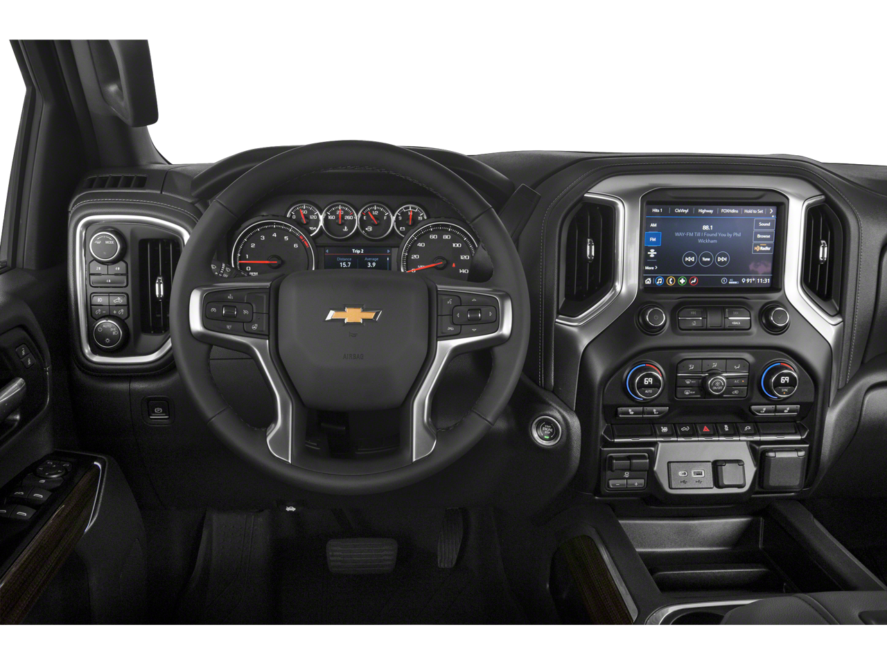 FLEET COMFORT PACKAGE includes (A2X) 10-way power driver seat including power lumbar, (KA1) heated driver and passenger seats, (N37) manual tilt/telescoping steering column, (NP5) leather-wrapped steering wheel, (KI4) 120-volt power outlet, (KC9) 120-volt bed-mounted power outlet, (QT5) EZ Lift power lock and release tailgate, (CJ2) dual-zone automatic climate control and (C49) rear-window defogger, SAFETY PACKAGE includes (UD5) Front and Rear Park Assist, (UKC) Lane Change Alert with Side Blind Zone Alert and (UFG) Rear Cross Traffic Alert, LPO, 6" RECTANGULAR, MIRRORS, OUTSIDE POWER-ADJUSTABLE VERTICAL TRAILERING WITH HEATED AND AUTO-DIMMING UPPER GLASS lower convex mirrors, turn signal indicators, puddle lamps, perimeter lighting, auxiliary lighting, power folding/manual extending (extends 3.31" [84.25mm]) Includes (DD8) auto-dimming rearview mirror.), CHEVROLET INFOTAINMENT 3 SYSTEM 8" diagonal color touchscreen, AM/FM stereo. Additional features for compatible phones include: Bluetooth® audio streaming for 2 active devices, voice command pass-through to phone, Apple CarPlay® and Android Auto® capable. (STD), ENGINE, 6.6L V8 with Direct Injection and Variable Valve Timing, gasoline, (401 hp [299 kW] @ 5200 rpm, 464 lb-ft of torque [629 N-m] @ 4000 rpm) (STD), HEAVY-DUTY (STD). Chevrolet LT with Silver Ice Metallic exterior and Gideon/Very Dark Atmosphere interior features a 8 Cylinder Engine with 401 HP at 5200 RPM*.