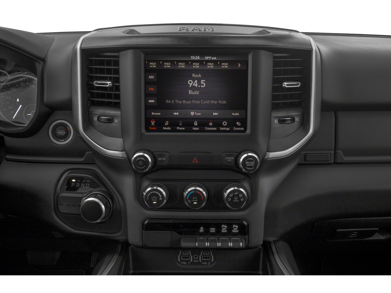 BIG HORN LEVEL 2 EQUIPMENT GROUP Radio: Uconnect 4 w/8.4 Display, Rear Window Defroster, ParkSense Front/Rear Park Assist w/Stop, Rear View Auto Dim Mirror, Power Adjustable Pedals, Rear Power Sliding Window, Rear Dome w/On/Off Switch Lamp, Glove Box Lamp, Power 4-Way Driver Lumbar Adjust, 115V Auxiliary Rear Power Outlet, Power 8-Way Driver Seat, 2 USB Full Function/Charge Only Media Hub, Heated Front Seats, Heated Steering Wheel, Foam Bottle Insert (Door Trim Panel), Class IV Receiver Hitch, Dampened Tailgate, Security Alarm, Black Premium Power Mirrors, Big Horn IP Badge, Remote Start System, SiriusXM Satellite Radio, 400W Inverter, Air Conditioning ATC w/Dual Zone Control, 115V Auxiliary Power Outlet, Cluster 7.0 TFT Color Display, Universal Garage Door Opener, Sun Visors, NIGHT EDITION Tires: 275/55R20 OWL All Season, Black Headlamp Bezels, Body Color Premium Power Mirrors, Body Color Door Handles, Exterior Mirrors Courtesy Lamps, Auto Dim Exterior Driver Mirror, Black Exterior Truck Badging, Anti-Spin Differential Rear Axle, Wheels: 20 x 9.0 Premium Paint/Polished, Exterior Mirrors w/Memory, Grille Surround 1 Black Texture 2 Black, Body Color Exterior Mirrors, Black Interior Accents, Dual Exhaust w/Black Tips, Power-Folding Mirrors, Body Color Front Bumper, Body Color Rear Bumper w/Step Pads, ENGINE: 5.7L V8 HEMI MDS VVT Active Noise Control System, 180 Amp Alternator, Heavy Duty Engine Cooling, GVWR: 7,100 lbs, Dual Rear Exhaust w/Bright Tips, HEMI badge, 600W Engine Cooling Fan, 26 Gallon Fuel Tank, BLACK TUBULAR SIDE STEPS, REMOTE START SYSTEM, TRANSMISSION: 8-SPEED AUTOMATIC (8HP75), DELUXE CLOTH BUCKET SEATS Power 8-Way Driver Seat, Bucket Seats, Full Length Floor Console, Power 4-Way Driver Lumbar Adjust. Ram Big Horn with Billet Silver Metallic Clearcoat exterior and Black interior features a 8 Cylinder Engine with 305 HP at 6400 RPM*.