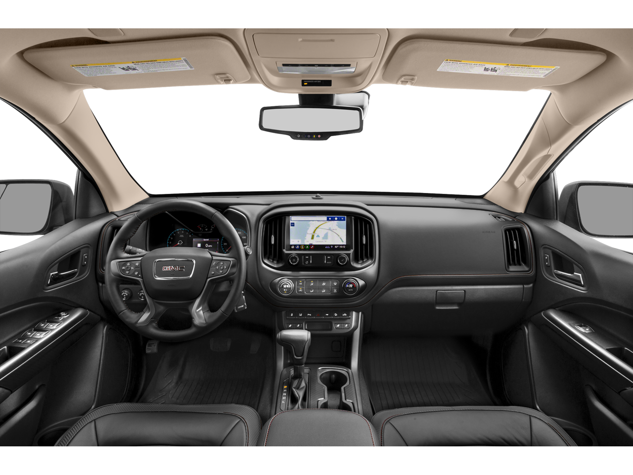 GMC INFOTAINMENT SYSTEM WITH 8 DIAGONAL COLOR TOUCH-SCREEN AM/FM stereo with seek-and-scan and digital clock, includes Bluetooth® streaming audio for music and select phones; featuring Android Auto® and Apple CarPlay® capability for compatible phones (STD), 3.6L DI DOHC V6 VVT (308 hp [230.0 kW] @ 6800 rpm, 275 lb-ft of torque [373 N-m] @ 4000 rpm) (STD), 8-SPEED AUTOMATIC (STD). GMC 4WD AT4 w/Cloth with Onyx Black exterior and Jet Black/Kalahari interior features a V6 Cylinder Engine with 308 HP at 6800 RPM*.