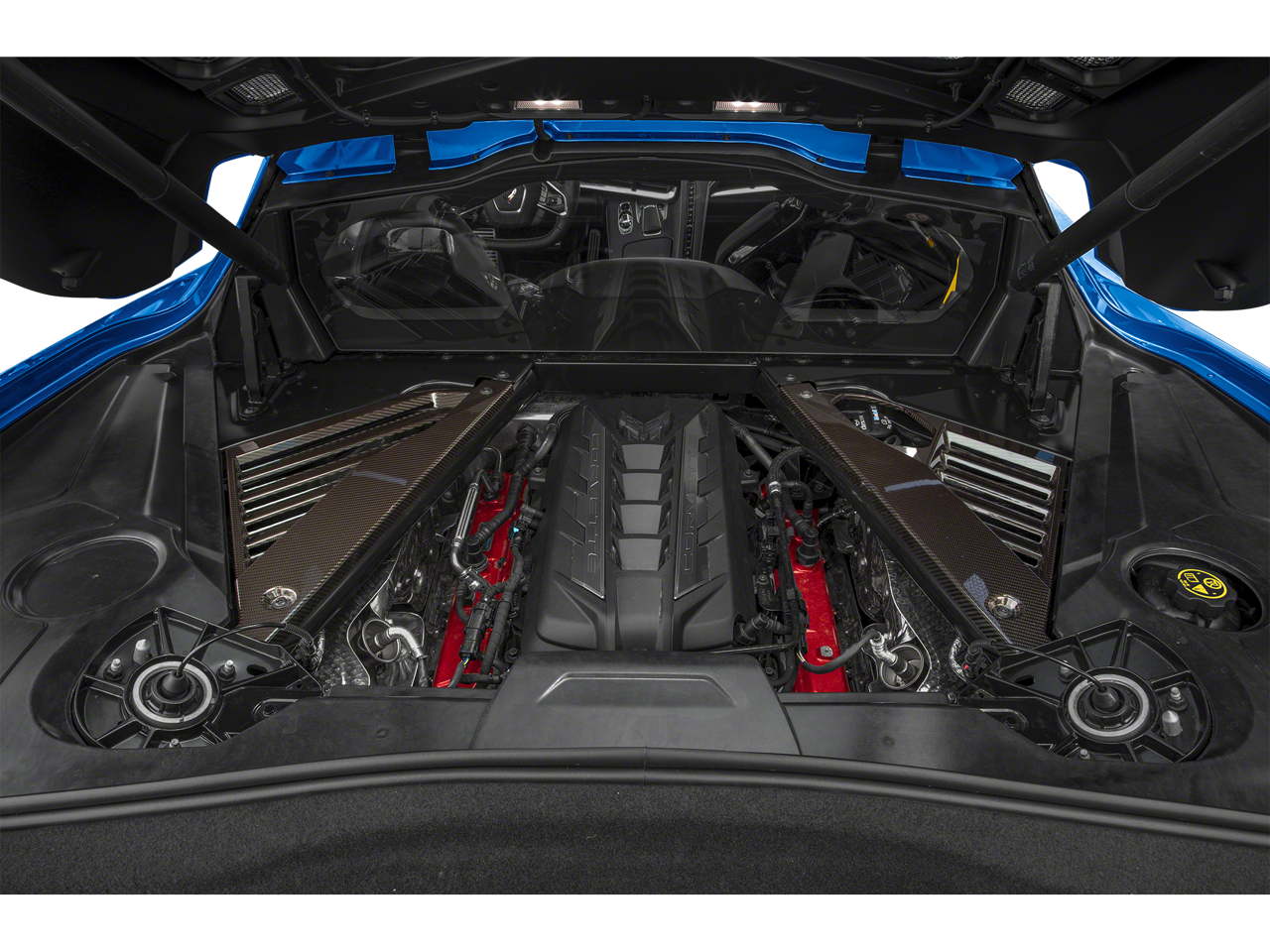 19 X 8.5 (48.3 CM X 21.6 CM) FRONT AND 20 X 11 (50.8 CM X 27.9 CM) REAR 20-SPOKE BRIGHT MACHINED-FACE FORGED ALUMINUM, SEATS, GT2 BUCKET, ROOF PANEL, TRANSPARENT, REMOVABLE, CHEVROLET INFOTAINMENT 3 PREMIUM SYSTEM with Google built-in compatibility (select service plan required, terms and limitations apply) including navigation capability, 8 diagonal HD color touchscreen, includes multi-touch display, AM/FM stereo, Bluetooth® streaming audio for music and most phones; featuring Wireless Apple CarPlay® and Wireless Android Auto® capability for compatible phones, advanced voice recognition, in-vehicle apps, personalized profiles for infotainment and vehicle settings (STD), ENGINE, 6.2L V8 DI, HIGH-OUTPUT Variable Valve Timing (VVT), Active Fuel Management (AFM) (490 hp [365.4 kW] @ 6450 rpm, 465 lb-ft of torque [627.8 N-m] @ 5150 rpm) (STD), TRANSMISSION, INCLUDES MANUAL AND AUTO MODES (STD). Chevrolet 2LT with Arctic White exterior and Adrenaline Red interior features a 8 Cylinder Engine with 490 HP at 6450 RPM*.