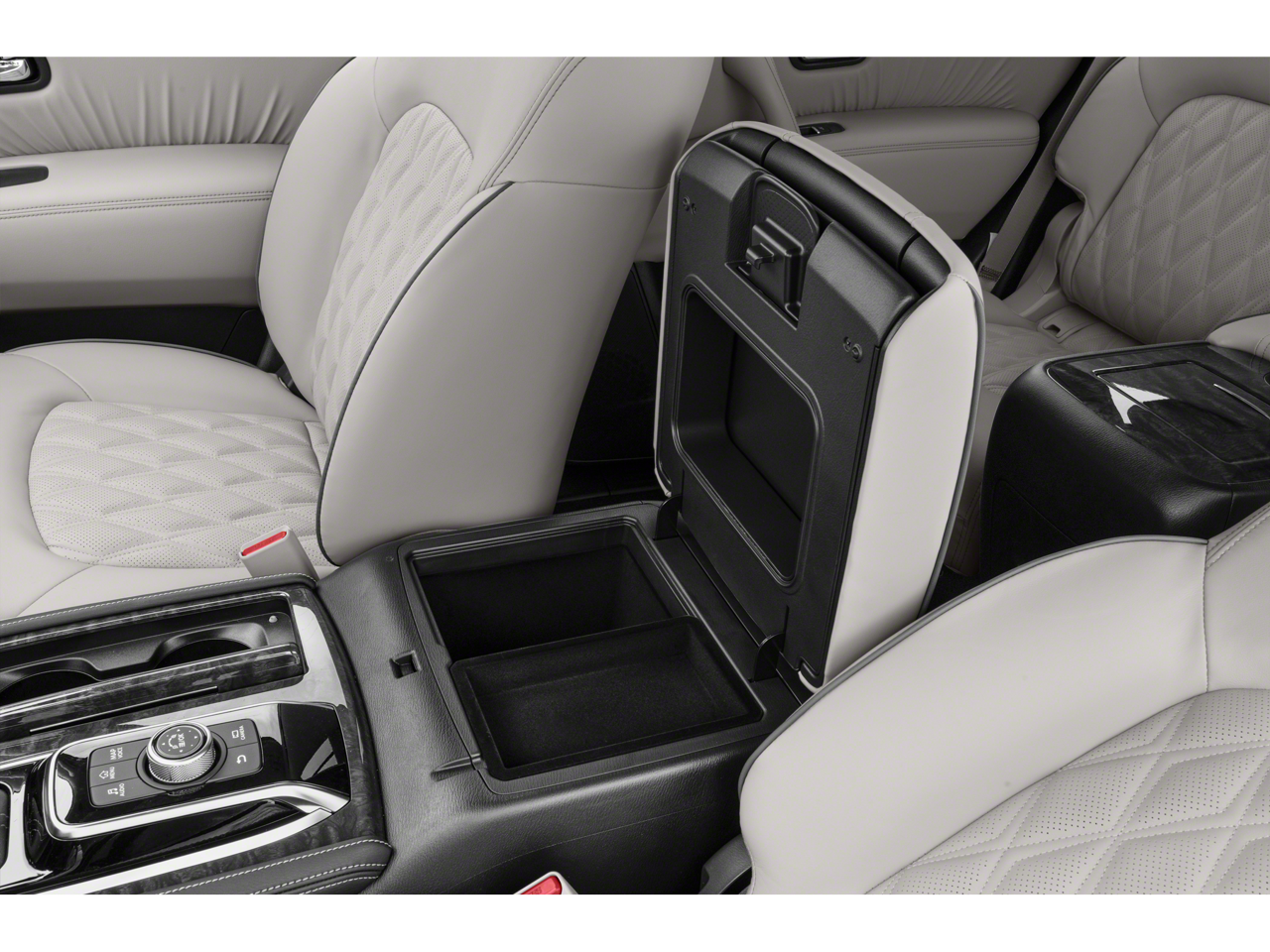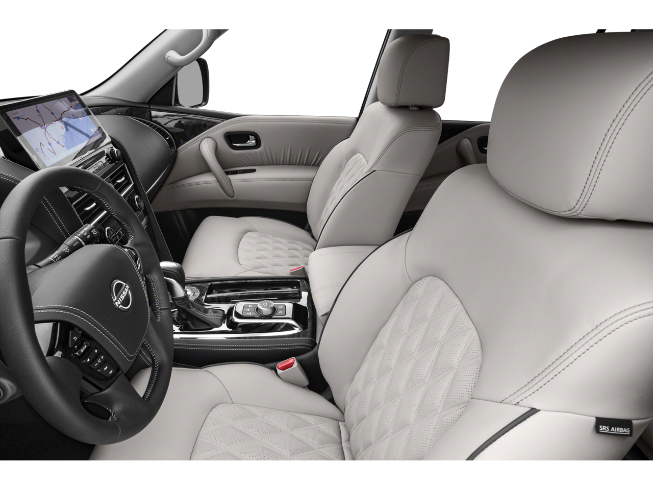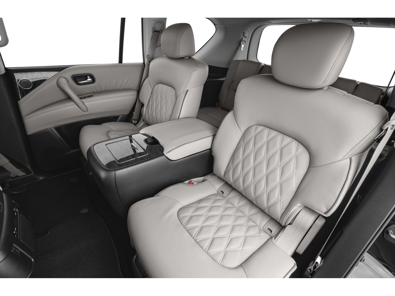 CAPTAINS CHAIRS PACKAGE Seating revised from 8 to 7 passengers, 2nd Row Captains Chairs, 2nd Row Center Console w/Padded Armrest, ROOF RAIL CROSS BARS - GUN METAL. Nissan Platinum with Aspen White Tricoat exterior and Almond interior features a 8 Cylinder Engine with 400 HP at 5800 RPM*.