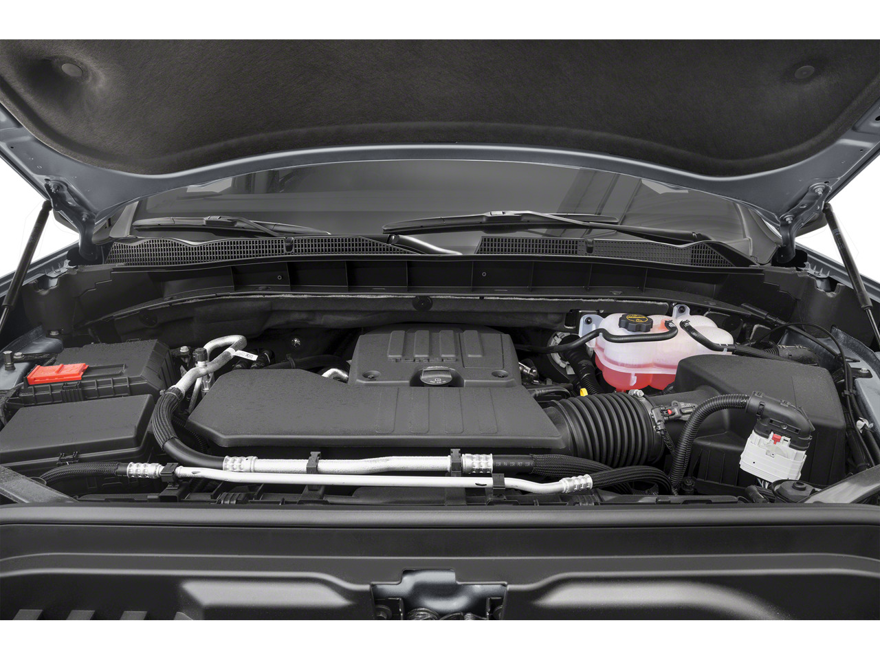 6" RECTANGULAR (dealer-installed), TAILGATE, GMC MULTIPRO TAILGATE with six functional load/access features, 13.4" DIAGONAL PREMIUM GMC INFOTAINMENT SYSTEM WITH GOOGLE BUILT IN APPS SUCH AS NAVIGATION AND VOICE ASSISTANCE, INCLUDES COLOR TOUCH-SCREEN, MULTI-TOUCH DISPLAY, AM/FM STEREO Bluetooth® streaming audio for music and most phones; featuring wireless Android Auto® and Apple CarPlay® capability for compatible phones (STD), TURBOMAX (310 hp [231 kW] @ 5600 rpm, 430 lb-ft of torque [583 Nm] @ 3000 rpm) (Includes (KW5) 220-amp alternator and (MFC) 8-speed automatic transmission. (STD). GMC Elevation with Sterling Metallic exterior and Jet Black interior features a 4 Cylinder Engine with 310 HP at 5600 RPM*.