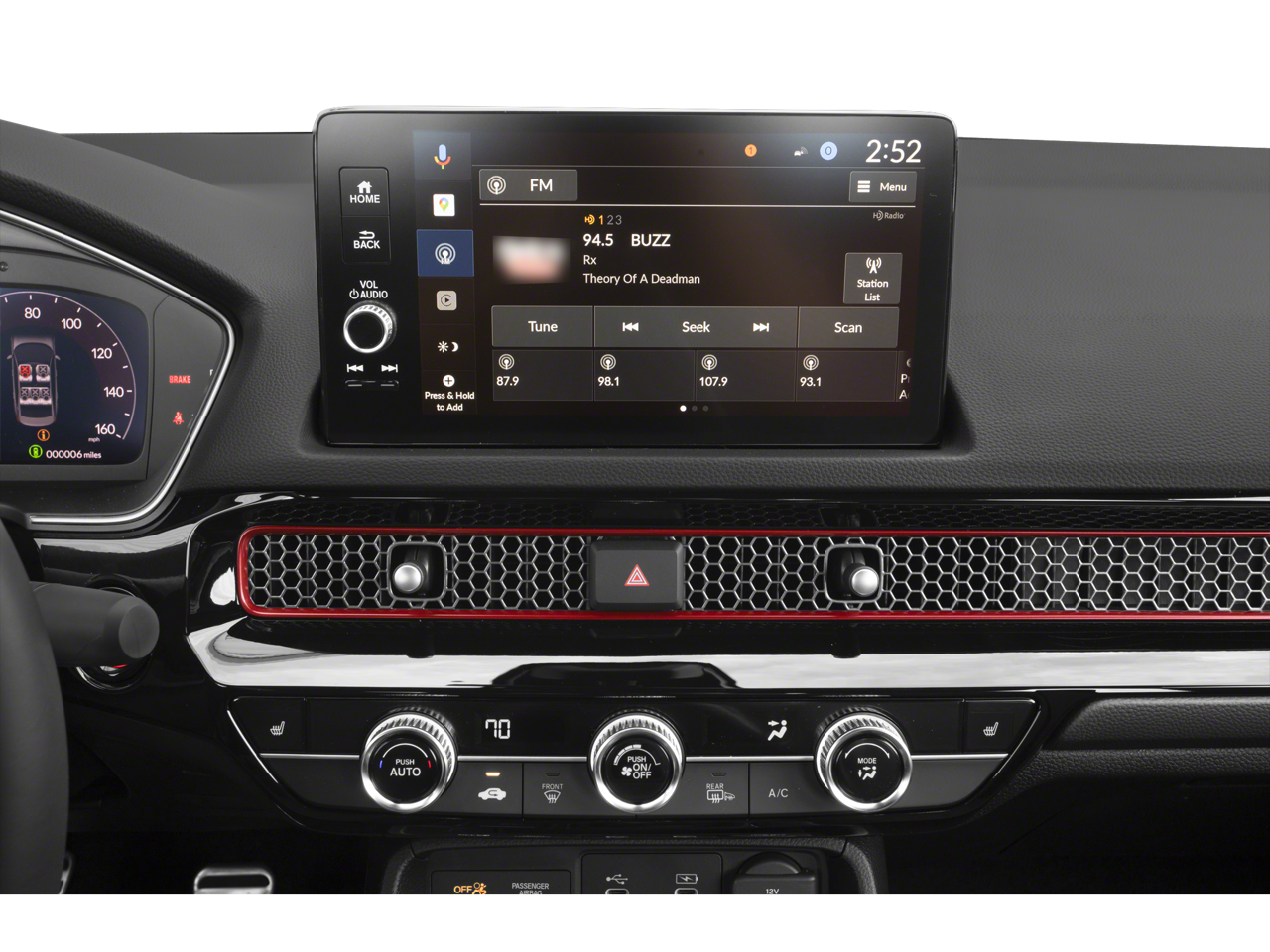 - Radio: BOSE Premium Sound System -inc: 12 speakers w/subwoofer, 9" color touchscreen, Google built-in w/3 years unlimited data plan for in-vehicle apps, Alexa built-in, Bluetooth® HandsFreeLink, Bluetooth® streaming audio, HondaLink, Speed-Sensitive Volume Compensation (SVC), Radio Data System (RDS), wireless Apple CarPlay and Android Auto compatibility, Wi-Fi hotspot capability, 2 USB-C 3.0A smartphone/audio interface and HD Radio